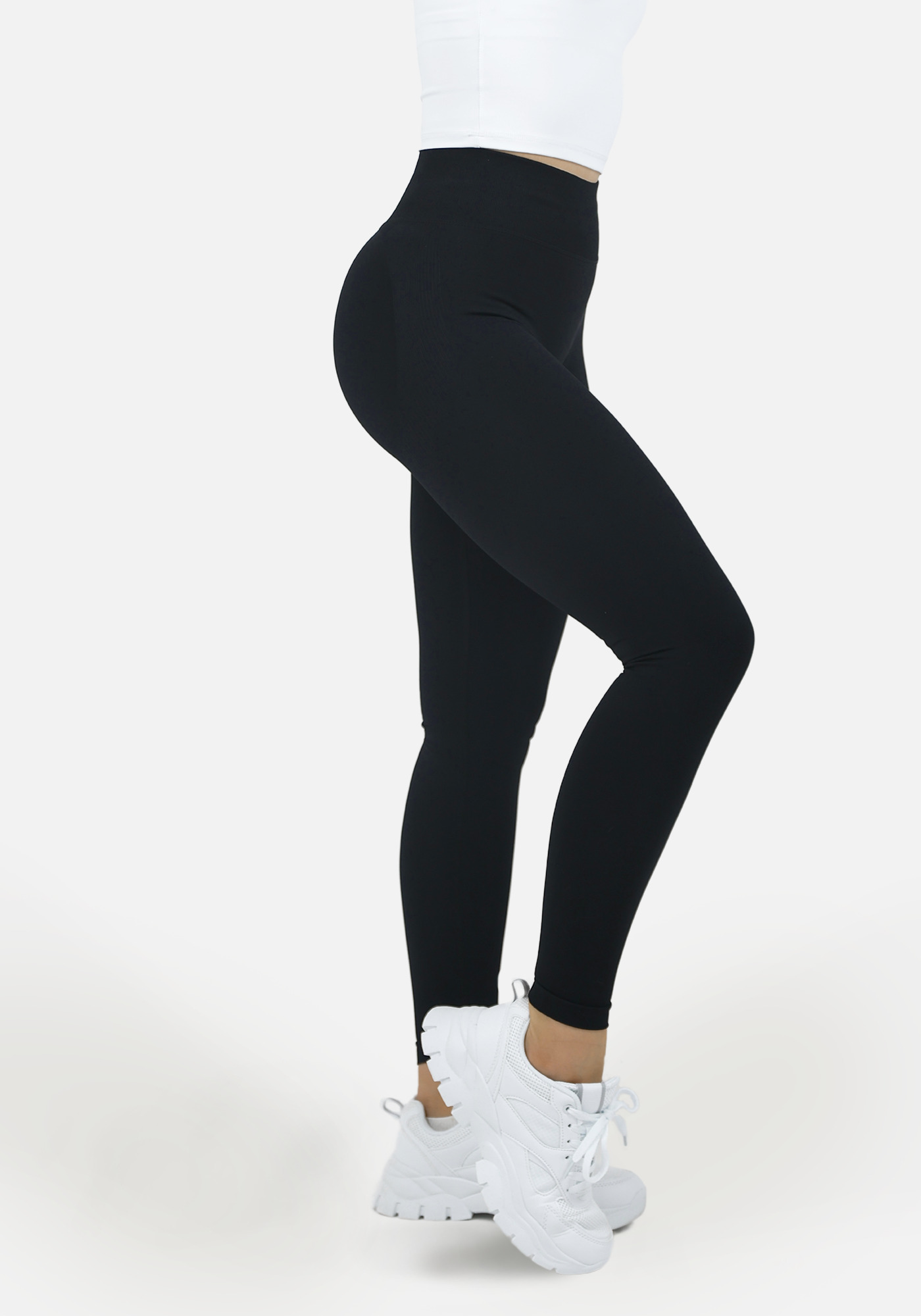 Odkryj nasze pierwsze seamless legginsy, które posiadają wyrazisty i starannie wykonany scrunch szew. W połączeniu z prążkowanymi detalami pod pośladkami tworzą idealny efekt push-up i pięknie modelują dolne partie ciała. Miększy materiał w okolicach pośladków pozwala scrunchowi idealnie dopasować się i podkreślić kształty.
