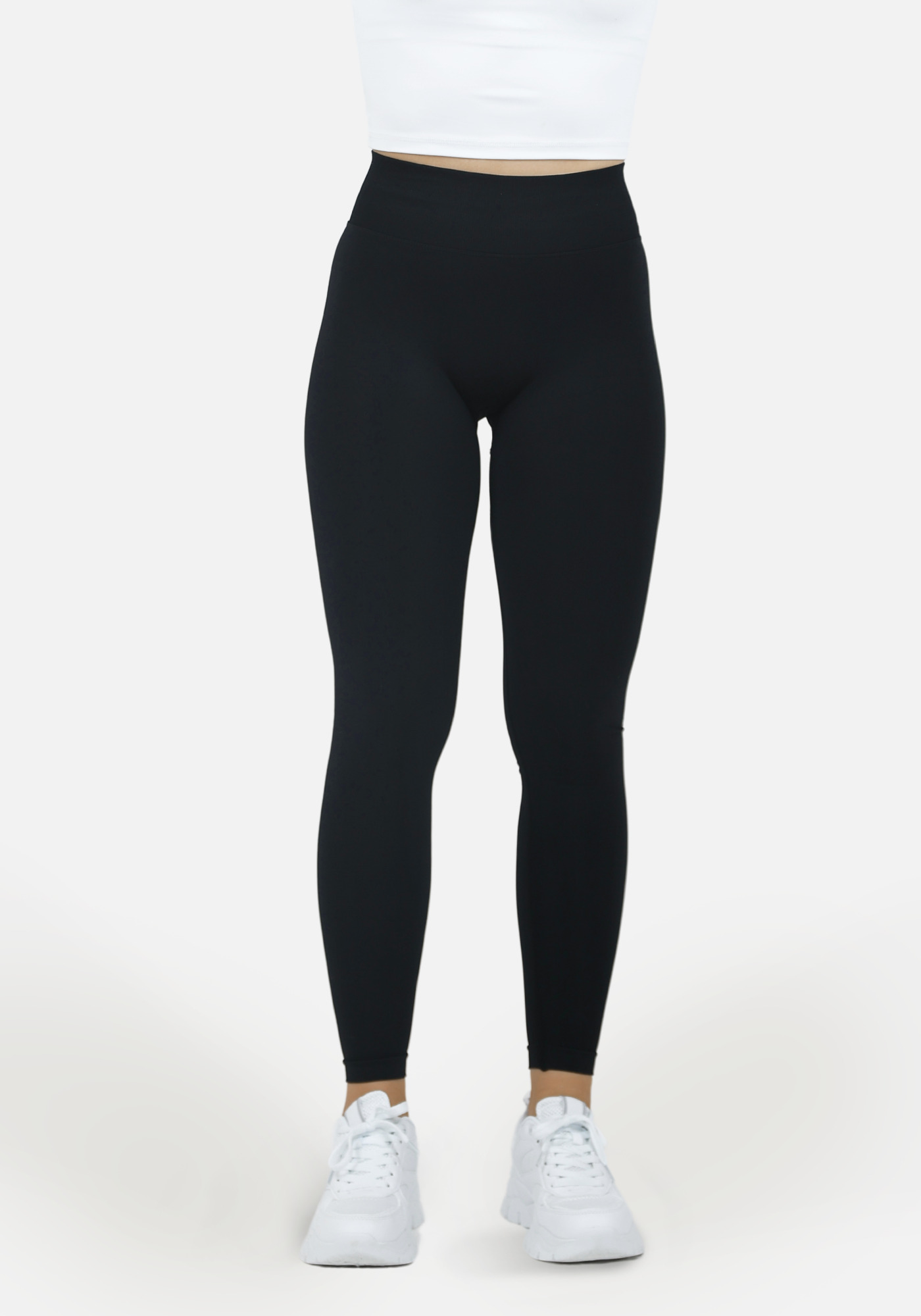 Vysoký a pevný rebrovaný pás zabezpečuje úplnú podporu brucha a udržiava legíny na mieste počas celého nosenia.