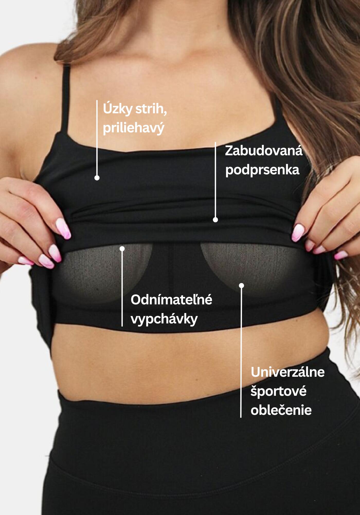 Vyberateľné kvalitné vypchávky, ktoré sú takmer neviditeľné. Toto tielko je ideálnou voľbou pre tých, ktorí vždy hľadajú flexibilitu a pohodlie.